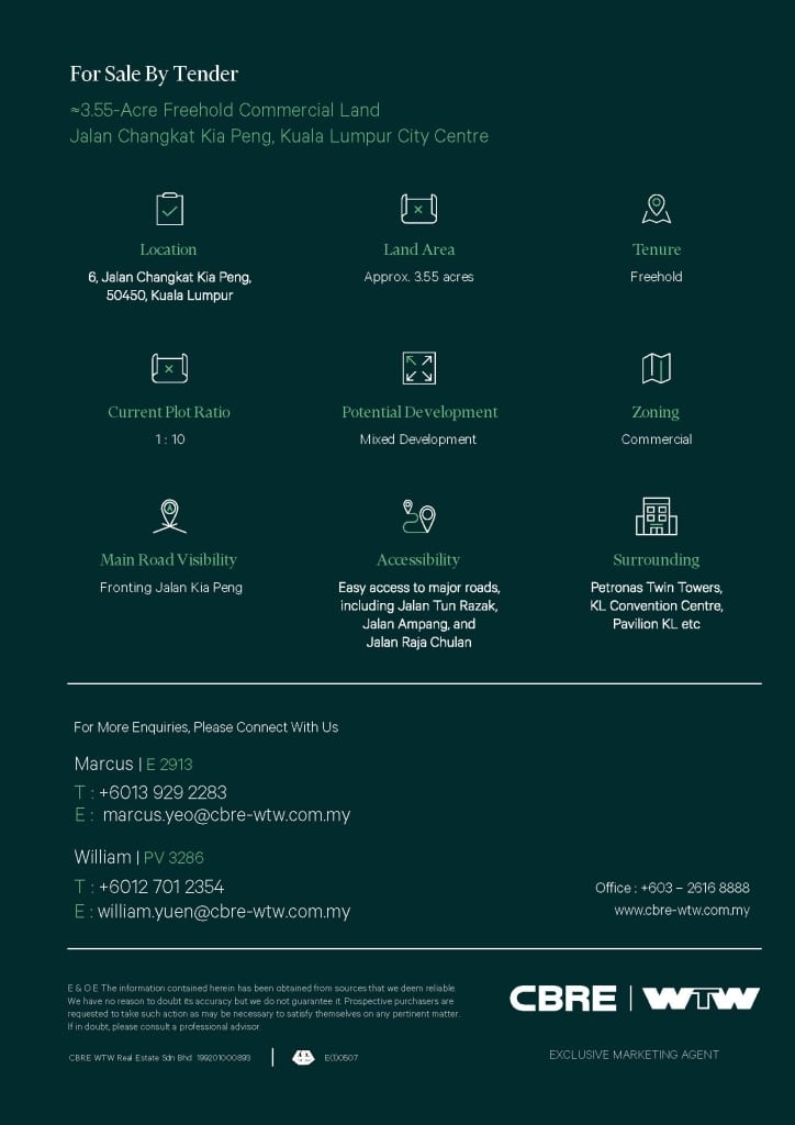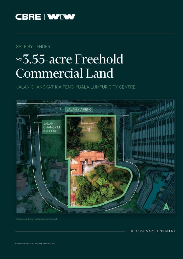For Sale By Tender : 3.55 Acre Freehold Commercial Land, Jalan Changkat Kia Peng, Kuala Lumpur City Centre