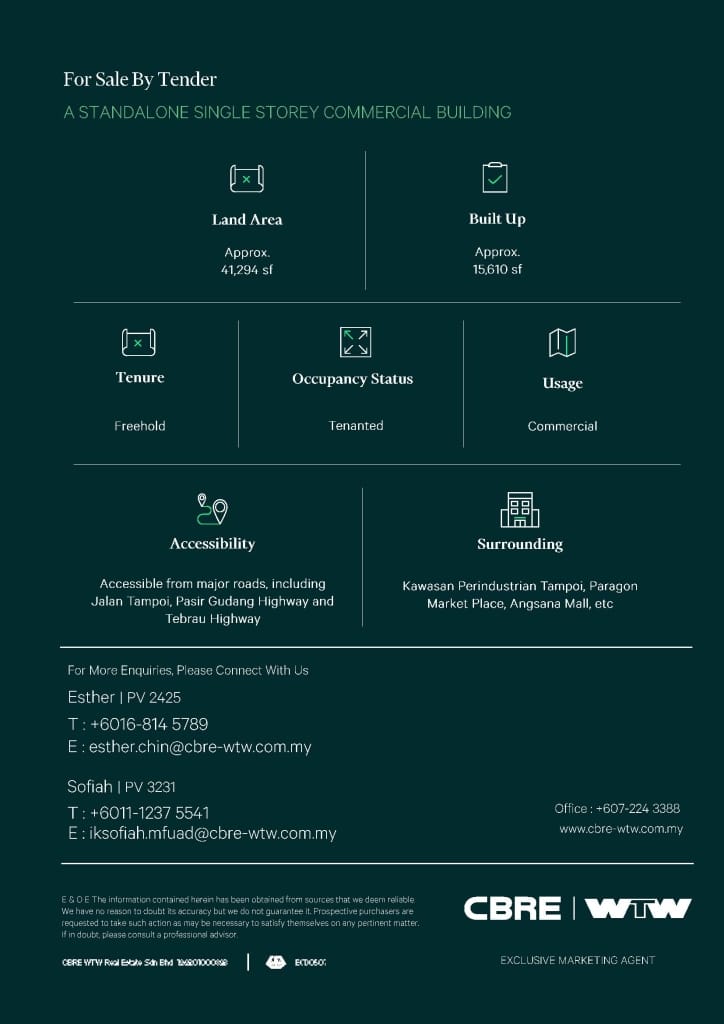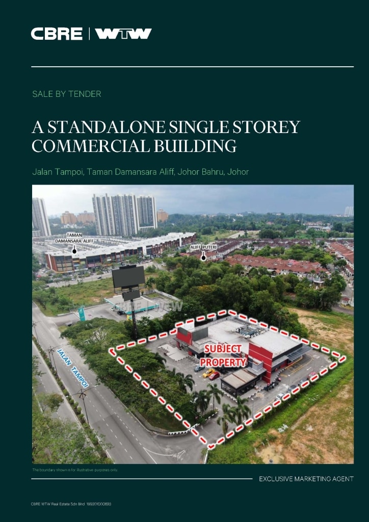 For Sale By Tender : A Standalone Single Storey Commercial Building @ Jalan Tampoi, Taman Damansara Aliff, Johor Bahru, Johor